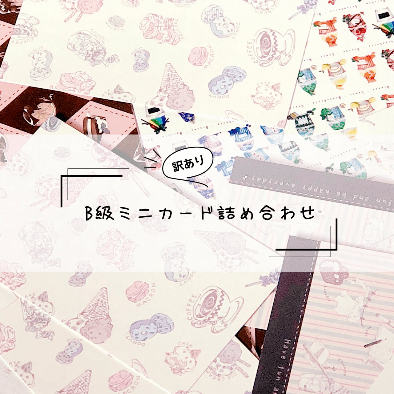 お菓子柄 スイーツ柄 ミニカード メッセージカード サンクスカード 詰め合わせ セット販売 訳有り B級 アウトレット