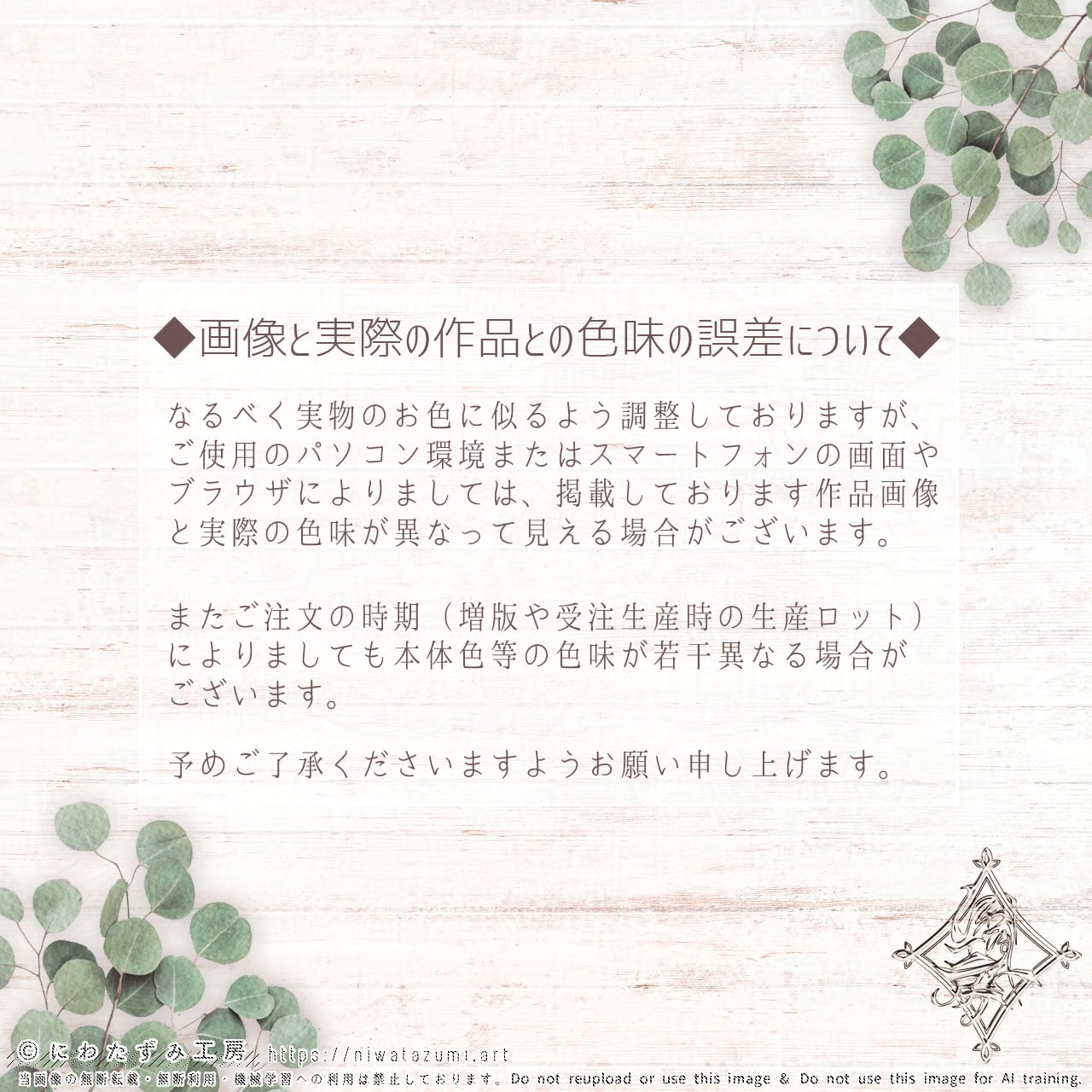 ・掲載されてる作品の色は、お使いのPC環境によって実物と若干異なる場合がございます。